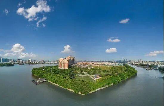 ①项目地处的洛溪岛,是继二沙岛之后,市中心第二个中轴岛,三江汇聚,处于城市中轴与珠江后航道的交汇处;