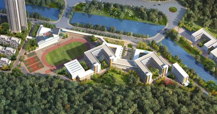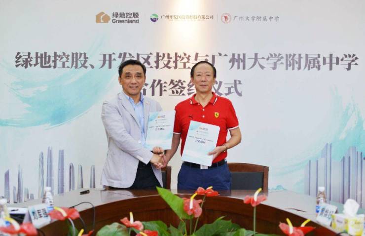 在2019年9月,绿地控股、开发区投控与广州大学附属中学正式举行了合作签约仪式。据销售称,广大附中教育的项目占地约5万平方米,约为项目占地面积一半,将配套从幼儿园到初中的九年一贯制教育——广大附中(36班)、广大附小(24班),以及公立幼儿园(12班),当然具体学位分配还是以区教育局文件为准。