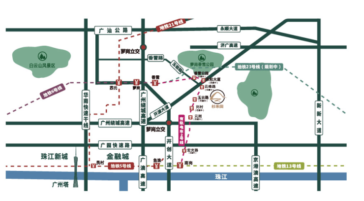 家门口有轨电车2号线无缝接驳6号线香雪站(香雪站—天河客运站)及13号线南岗站(鱼珠—南岗—新沙)