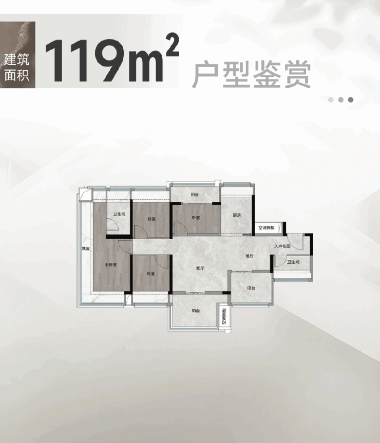 项目采用了极具先锋意识的“一”字横向分布布局。这种布局的好处是不言而喻的:无错位、不遮挡。这不仅仅是为了采光,更是一种对景观资源的公平分配。每一户都是通透的,每一户都是“有景”的,绝大部分户型还能对望云山。
