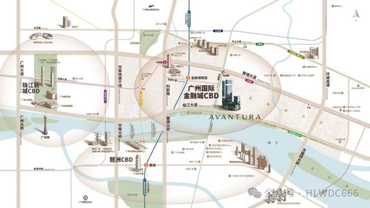 向南对望从琶洲之眼到小蛮腰的城市天际线,向西收藏金融城-珠江新城地标建筑群