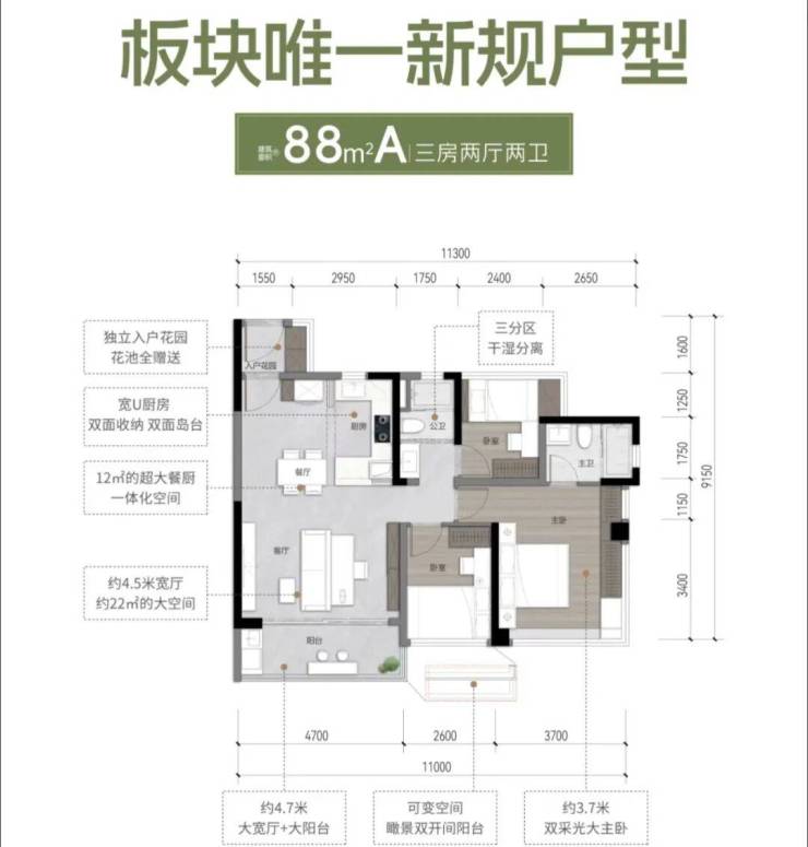 产品:建面77㎡、88㎡、98㎡、105㎡、135㎡