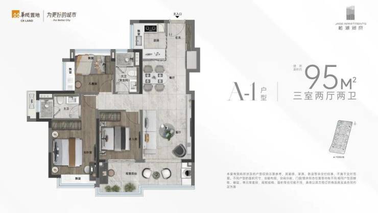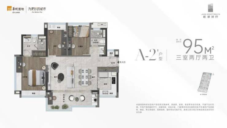 ✅【约5.7米横厅开间 大面宽户型 】A-2户型 95㎡ 三房两厅两卫
