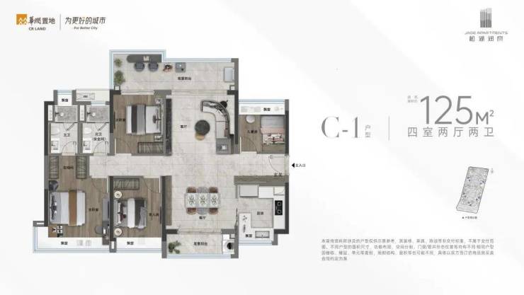 ✅【南北双阳台清风对流 等宽客餐厅空间利用最大化】C-1户型 125㎡ 四房两厅两卫
