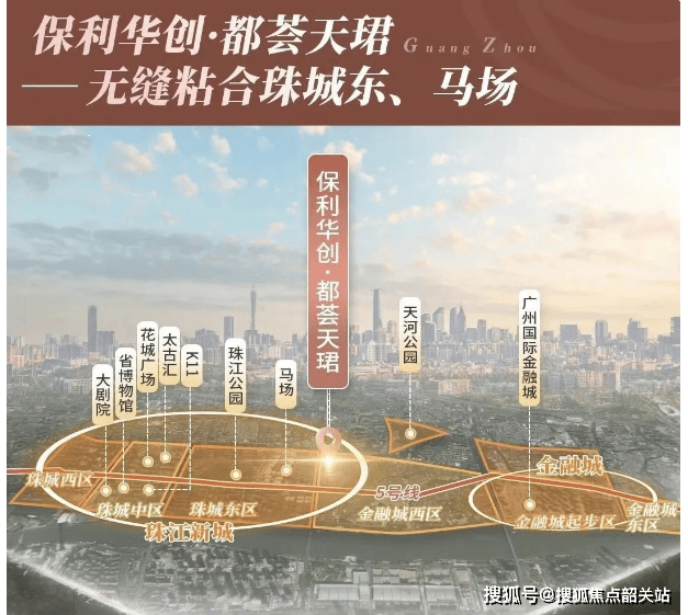 保利华创·都荟天珺坐落于广州天河区员村一横路AT080523地块,地处珠江新城东侧,与珠江新城核心区仅一马路之隔。西侧紧邻珠江新城东区高端住宅群,东接广州国际金融城起步区,南望琶洲西区数字经济总部集群,形成“三核交汇”的战略级地段。该地块于2023年以21.8亿元总价、楼面价约5.7万元/㎡被保利竞得,位列当年广州宅地成交楼面价前三。尤为关键的是,项目正对规划中的马场地块——这片被称为“珠城最后一块宝地”的区域,已明确对标北京SKP进行高端商业升级,未来将彻底激活珠城东片区的商业能级。身处如此稀缺且具备强成长性的地段,都荟天珺不仅坐享现有成熟配套,更提前锁定了未来十年的城市红利。