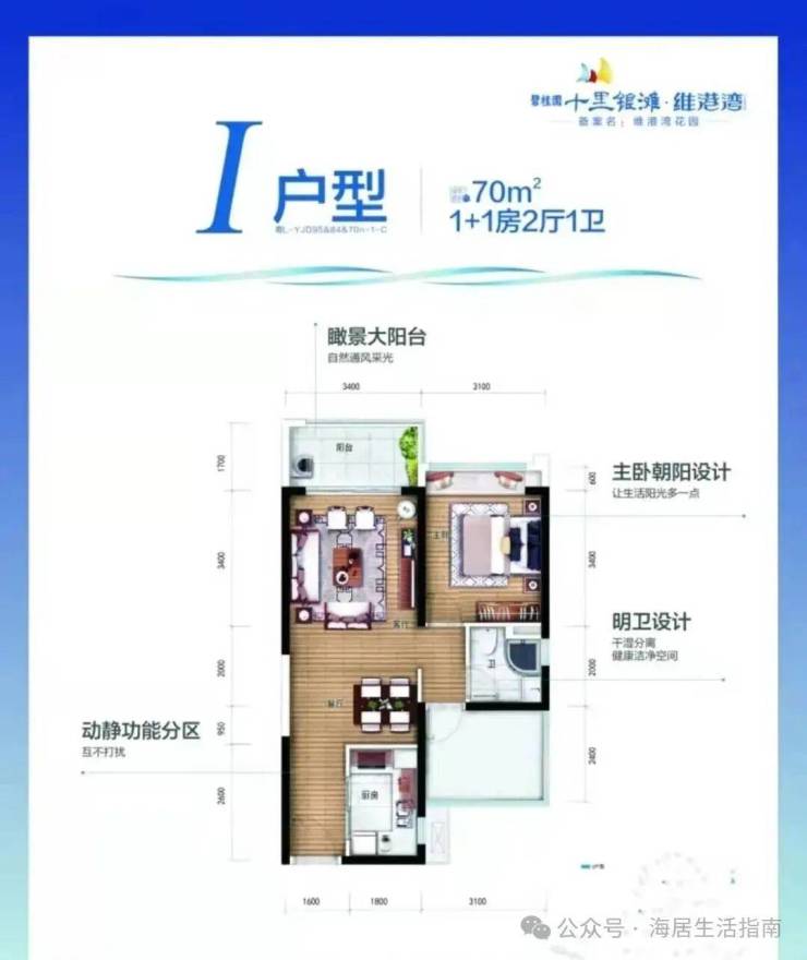 在售户型:70-80㎡1+1房2厅2卫
