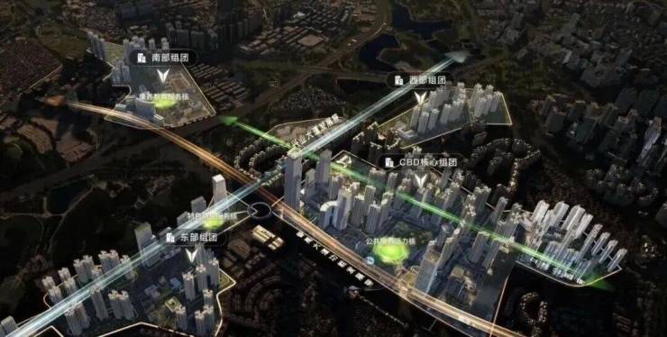 整个万博城可划分为CBD、东部、西部、南部四个组团: