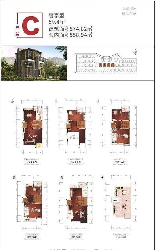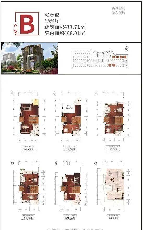 由88套,建筑面积477㎡——677㎡真双拼稀缺美墅组成