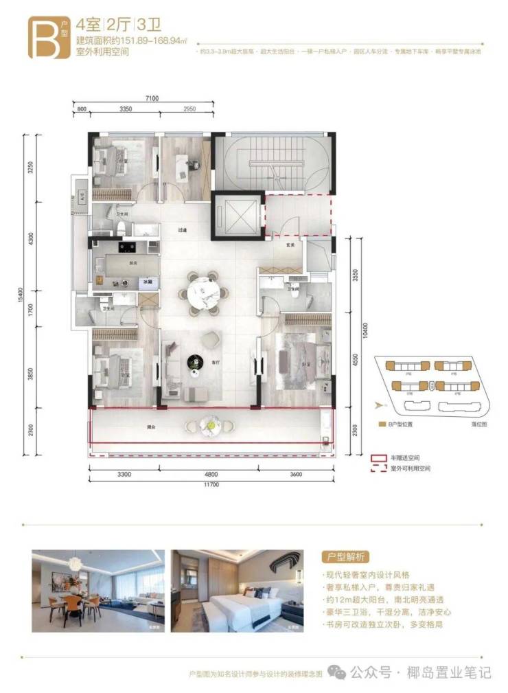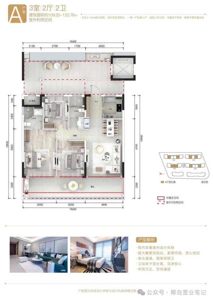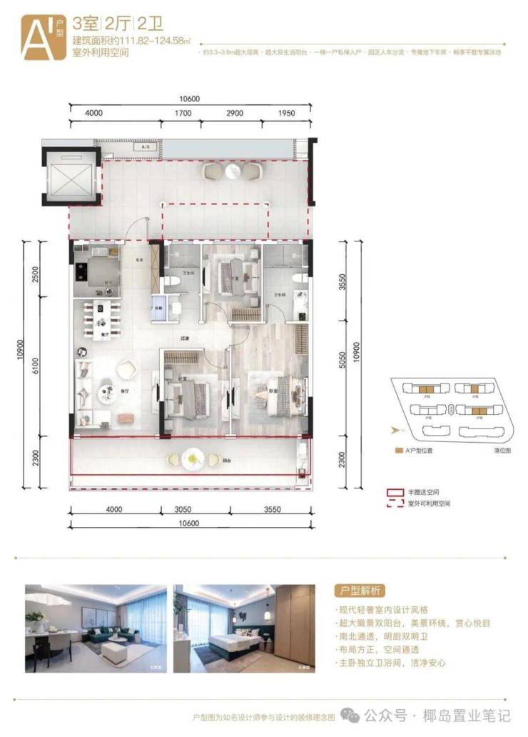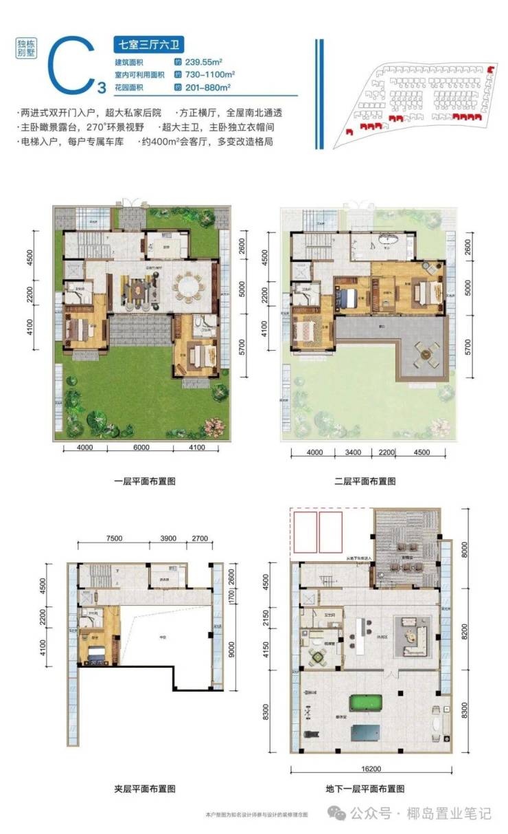 项目信息:项目为低密度一线海景社区,容积率约1.2,规划包含一线海景公寓、瞰海大平层、云端会所、无边际泳池、直升机停机坪、私属海滩。产权70年,精装交付,预计2028年底交付。