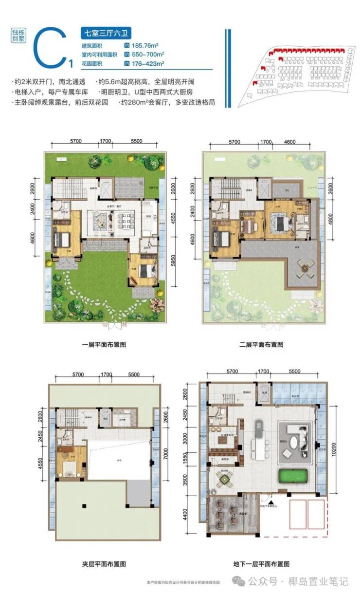 平墅:约115—168㎡ 3.9米层高现房平墅,南北双露台
