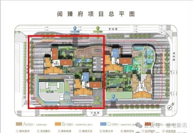本次现售的是1栋-3单元和4单元2栋楼,合计约300套,梯户比为3梯5户,建面约 108㎡、109㎡以及 138㎡四房。