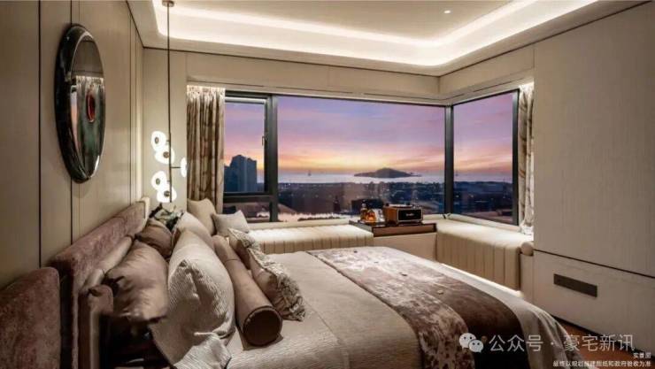 随着转场邀请,嘉宾信步踏入阅臻府的实景展示空间。阅臻府坐享南向瞰海视野,约270°全景飘窗将海湾风光框入日常。
