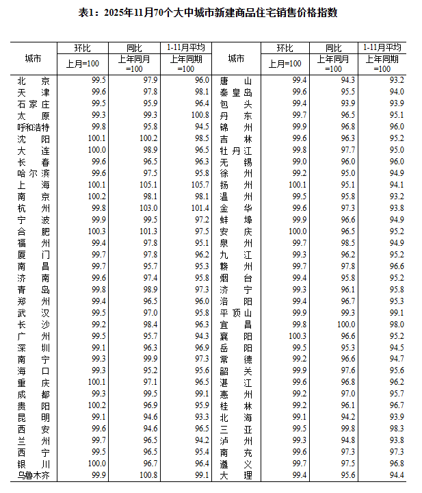 ——国家统计局城市司首席统计师王中华解读2025年11月份商品住宅销售价格变动情况统计数据