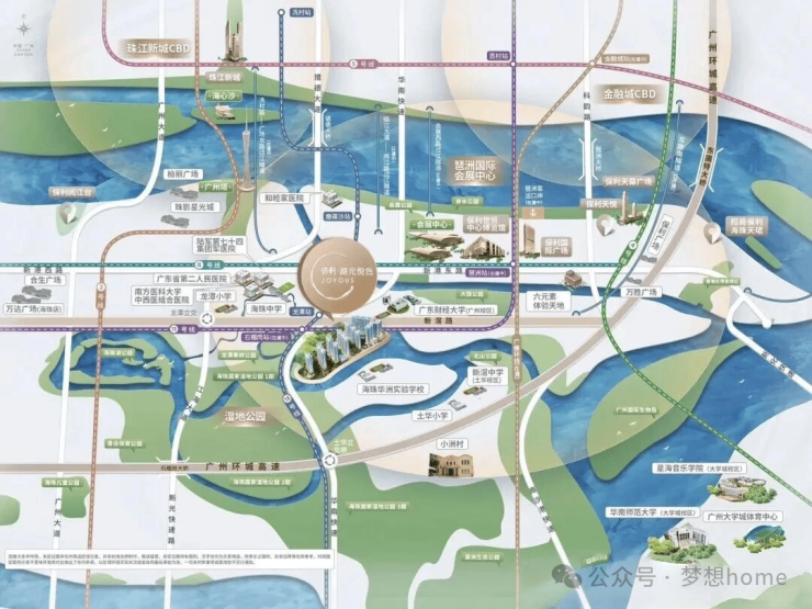 全球最大的市中心湿地公园就在附近,-海珠湿地公园作为全球最大的国家级生态公园,总面积约 1100 公顷,7倍于伦敦海德公园,3倍曼哈顿中央公园,是净化环境的天然氧吧,更是无法复制的稀缺生态资