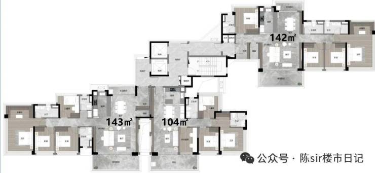 板楼建面约144平4+1房两卫,由原本的152平改造而来,降低总价,减轻买家的压力。