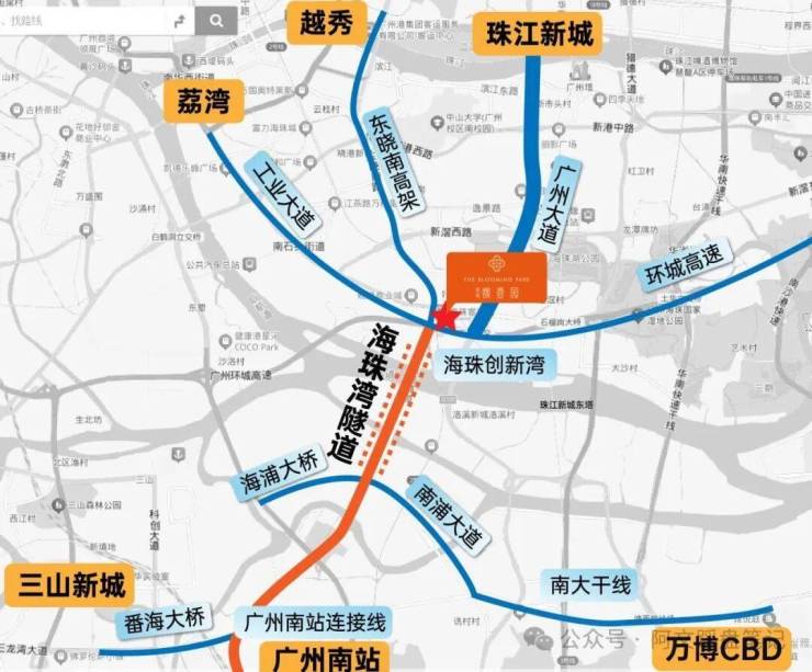 ● 海珠湾隧道口,快速通达广州南站、珠江新城、越秀、荔湾等城芯。