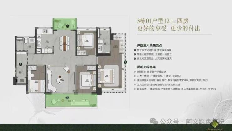 ◎面积段:约85-128㎡全南向·超高使用率·新规三至四房
