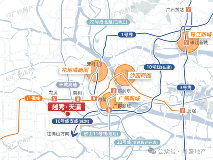 享地铁广佛线(菊树站、龙溪站)、广州1号线(西塱站)、双地铁线路;项目门口452、525路线路,便捷出行;邻近龙溪大道、花地大道、环城高速、如意坊放射线(建设中)等两行两纵交通路网,从项目出发自驾快速抵达白鹅潭、珠江新城商圈。信息来源:百度地图