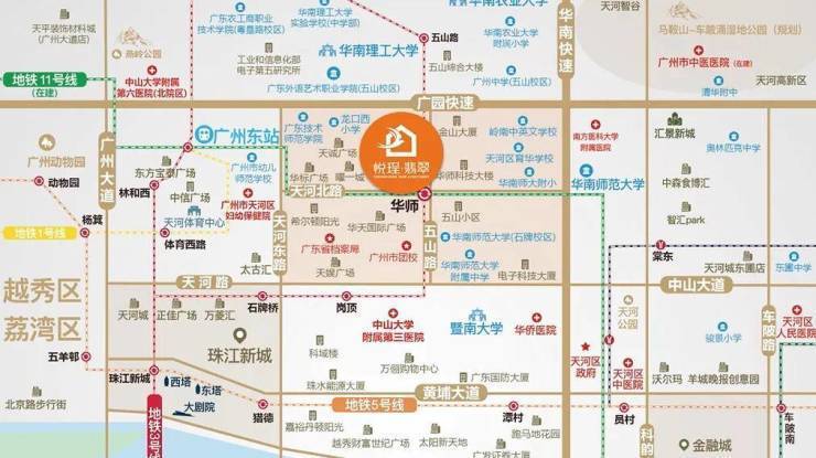 2、华南理工大学、华南师范大学、华南农业大学等985、211高校围绕,环境优美、人文气息浓郁、人群素质较高;