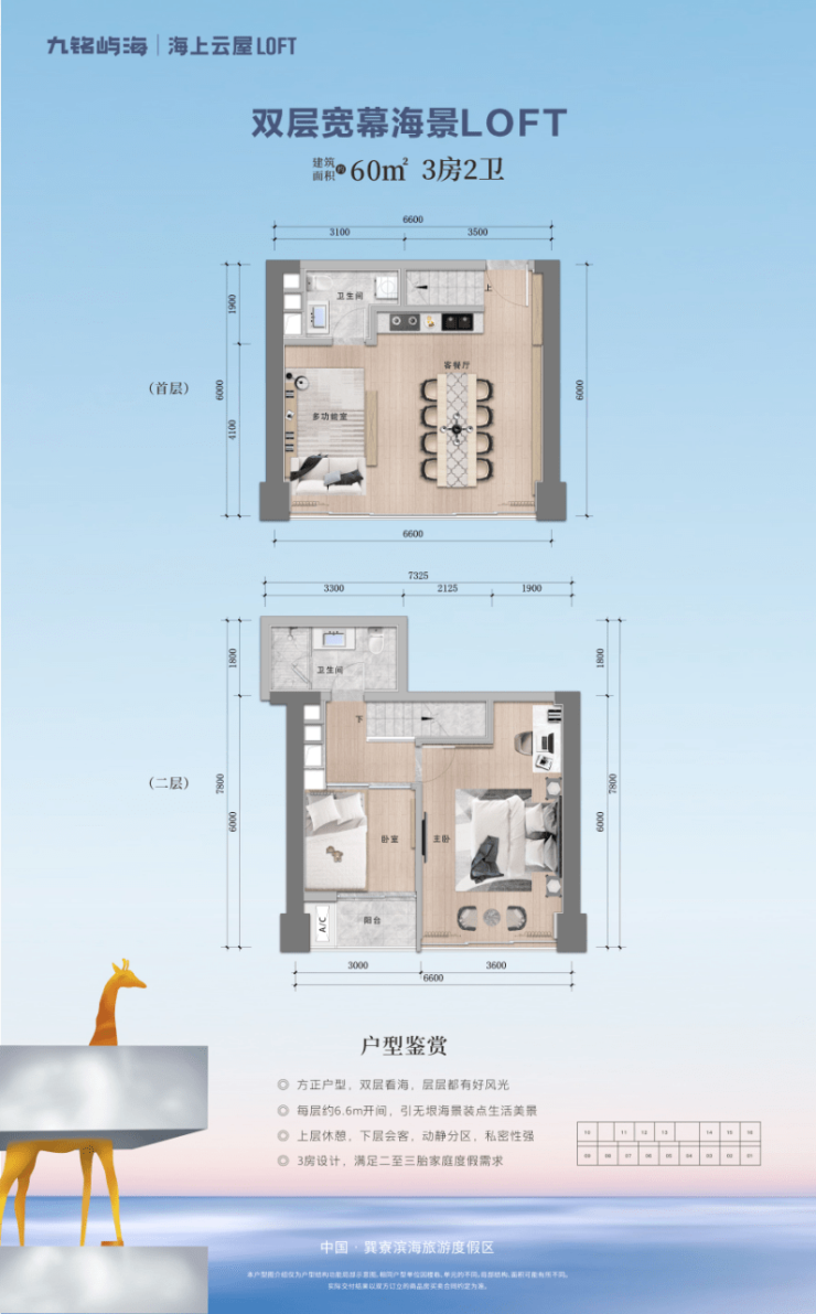 复式期房:约60㎡3房2卫山景/海景复式,一线风光!巨幕视野!