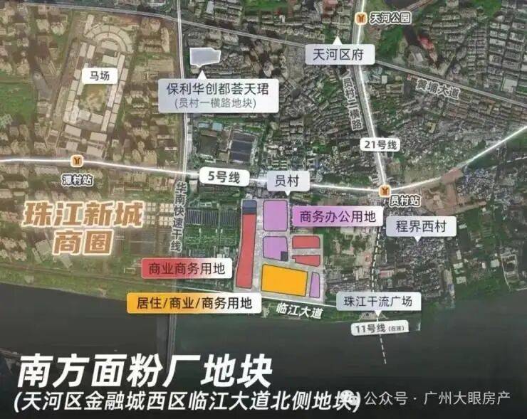尤为值得一提的是,这是天河比较难得的靠近地铁站的盘,地块东北侧距离地铁5号线与11号线交汇的员村站仅150m,5号线+11号线可以连通广州最核心的几个商务圈---珠城、琶洲、天河北、白鹅潭等等,通达性很强。