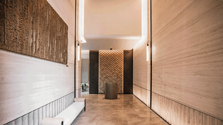 将园林的高山流水框成一幅画,引入室内,传递出华樾自然与奢华并蓄的生活哲学。