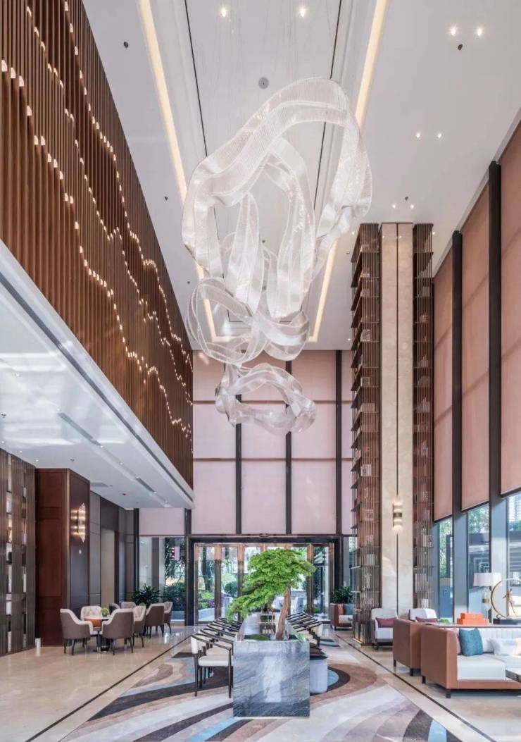 中国人的哲学是“礼”的哲学,在言语上、在行动中、在书卷里,更在门厅堂庭院落之间。华鸿·璟悦轩12米挑高主入户大堂,以国际视野匠心打造出极具新中式韵味与奢华现代感结合的城市会客厅接待中心。豪华水晶灯、大型书柜、豪华沙发等,为尊贵生活营造匹配的仪式感,让业主归家或亲友来访尽享私家礼遇。