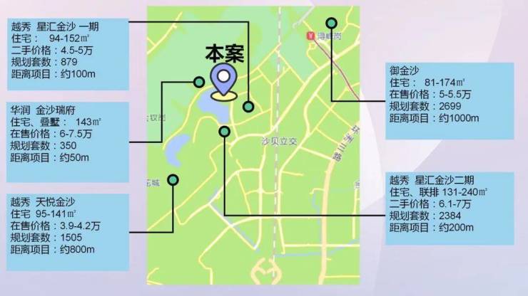 🎓教育配套:周边有超10所幼儿园:金沙幼儿园、浔峰幼儿园、广州大学附属中学实验幼儿园等;7所小学:广附小学、沙凤小学、沙凤小学北校区、金沙小学、金沙小学本校区等; 3所中学:广大附中实验中学、广东华侨中学金沙洲校区、广大附中实验学校