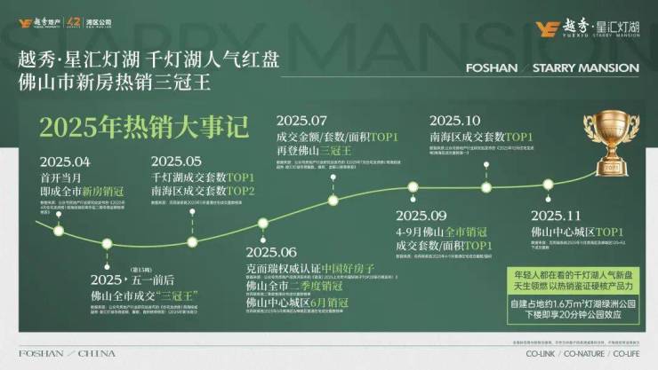 越秀·星汇灯湖堪称佛山当之无愧的 TOP1 红盘,现象级新规红盘三推三罄,荣耀加冕佛山全市销冠,实力有目共睹。作为越秀地产精筑之作,国央企携手,品质领航。越秀地产作为千亿国企,2025 中国房企综合实力 TOP7,是中国第一批综合性房企、第一代商品房缔造者,还拥有诸多行业开创性成就,品牌实力雄厚,为项目品质提供了坚实保障。项目提出的“Co-city”2.0 理念,整合跨城交通、资源共享与生活体验,更懂佛山人居需求,打造出独特的人居范本。总价 150 万起就能享千灯湖顶配资源、公园生态、省级学府圈,性价比超高,是购房者的优质之选。