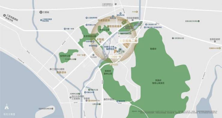 三亚观岚坐落于三亚中央商务区起步区CBD,这里是海南自贸港建设新潮头下,景观与资源集聚的双重高地。项目北临三亚核芯经济走廊迎宾路,南侧紧邻市中心的国家4A级旅游风景区凤凰岭,周边还有临春岭森林公园、东岸湿地公园、临春河等生态资源环绕,是城中央难得的人居高地。