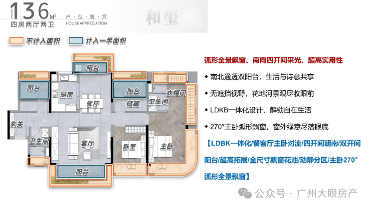 142方,2梯2户+独梯入户的设计,将私密性拉满,厅出阳台即是花地河水景,双主卧大面积+8.5m宽景阳台的设计满足多使用场景,北阳台可望花地河水景,南飘窗可望园林,景色全览。