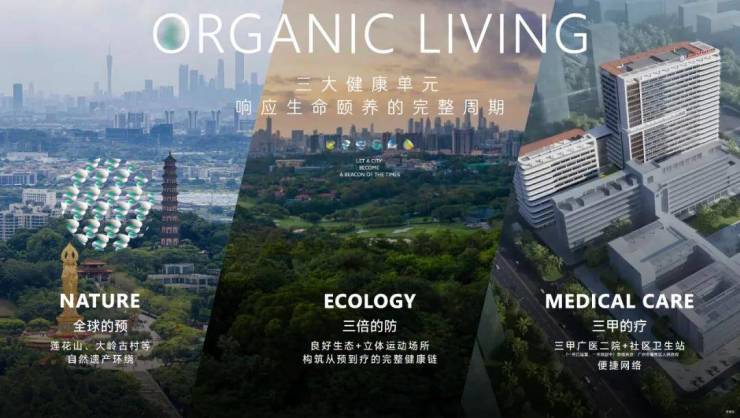 “预防-疗愈-康复”完整健康链,三甲广医二院番禺院区已运营。未来升级为南部应急医疗中心,与2座社区卫生站共同构成便捷医疗网络。