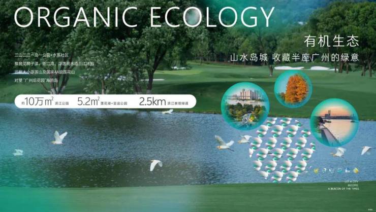 生态有机,山水城岛画卷。坐享 “三山二水一岛”生态格局,东望狮子洋、砺江湾、浮莲岗水道三江环绕,远眺大小浮莲山及4A级莲花山,对望“广州后花园”海鸥岛。