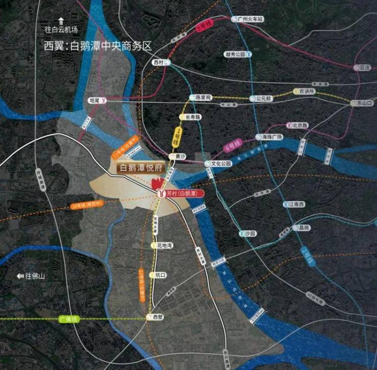 广州华润置地白鹅潭悦府(别名:望泓台)位于荔湾区芳村白鹅潭CBD核心区,是集居住、商业、文化于一体的大型综合体。项目坐拥三江汇聚一线江景,交通便利,周边配套成熟。主打133-243㎡高端产品,设计高端,居住品质与私密性高。未来还将引进国际知名购物中心等高端业态,是广州的高端住宅项目。