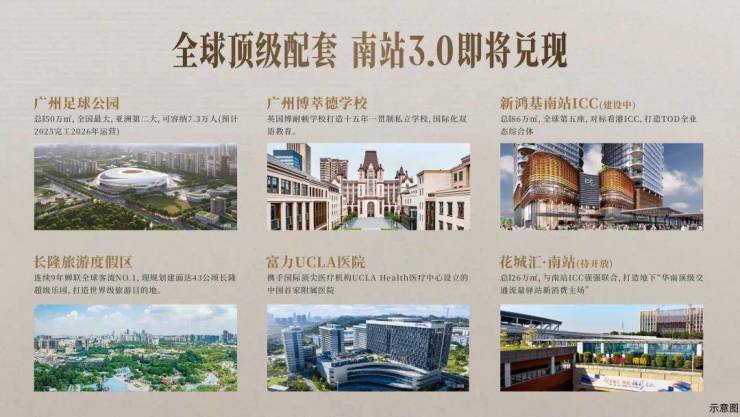 商业方面,1km3商圈,享200万㎡繁华,500m万科南站中心喜街,1km新鸿基南站ICC,南站花城汇,15min长隆万博商圈。