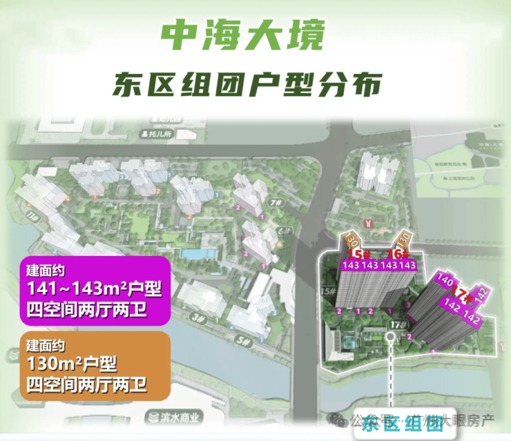东区为住宅组团,有滨水园林,近地铁和商业,有精英要的奢享及高效;