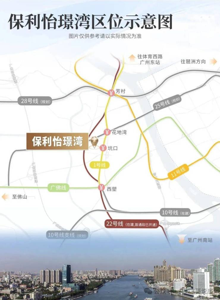 约 600 米到黄金地铁 1 号线,2 站芳村 TOD 换乘 11 号线环线(已运行),1 站西塱 TOD 换乘广佛线(已运行)和 10 号线(预计 2025 年 6 月开通),通向珠城等地的交通便捷,畅达全城;