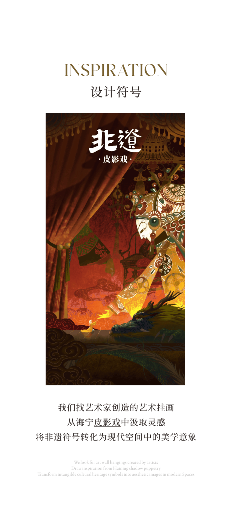 我们找艺术家创造的艺术挂画从海宁皮影戏中汲取灵感,将非遗符号转化为现代空间中的美学意象。画面以皮影角色为视觉支点,融传统叙事于当代笔触,既致敬非遗魅力,也为空间注入在地文化底蕴。