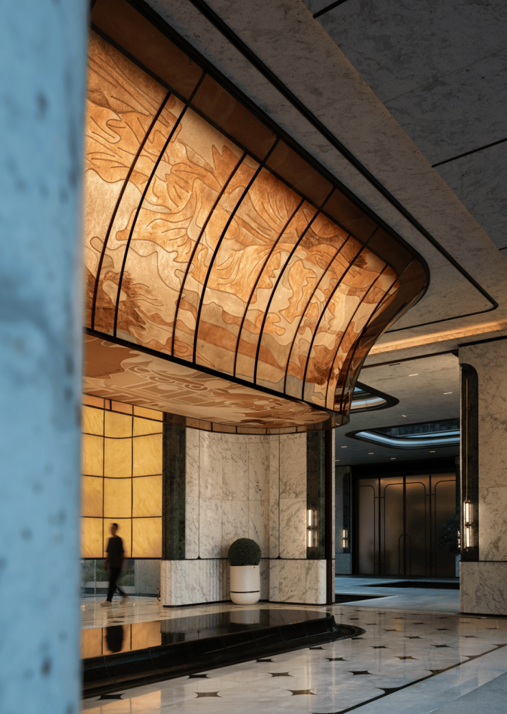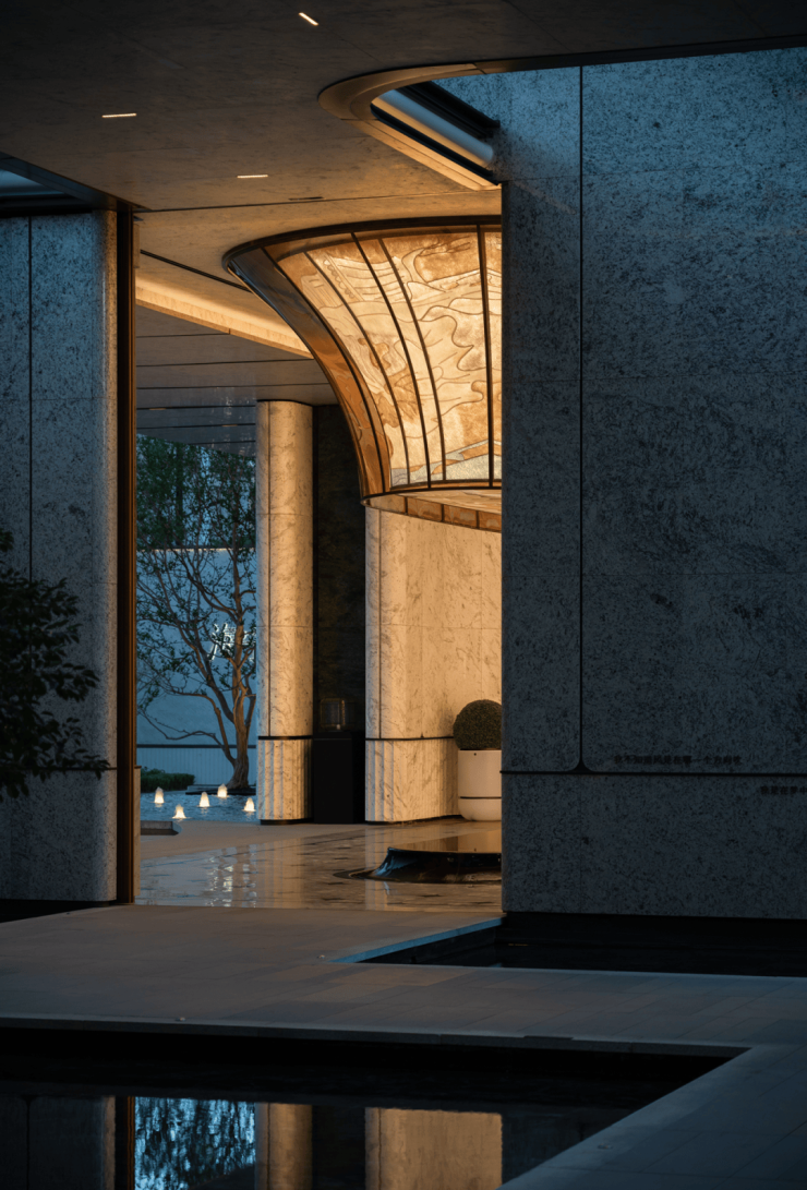 入口,是整个空间的先声夺人之处,是一场艺术序章,更是一种精神仪式的开端。我们以现代设计语言转译其千年工艺,让璀璨光影在入口处缓缓流淌。当每一位家人与宾客归来,第一眼便能感受到海宁独有的文脉与尊贵。