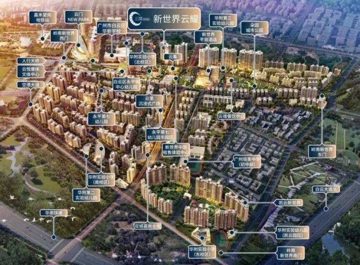 新世界云耀的生活配套非常完善,楼下即是50万㎡的云门New Park购物中心,涵盖购物、餐饮、娱乐等多种功能,让业主的日常生活极为便捷。同时,项目内配建了11所学校,包括华师附小、华师附中等教育名校,满足了从幼儿园到初中的全阶段教育需求,极大地方便了有学龄孩子的家庭。生态环境方面,项目紧邻白云山,部分户型享有优美的自然景观,给业主提供了与自然亲近的居住体验。