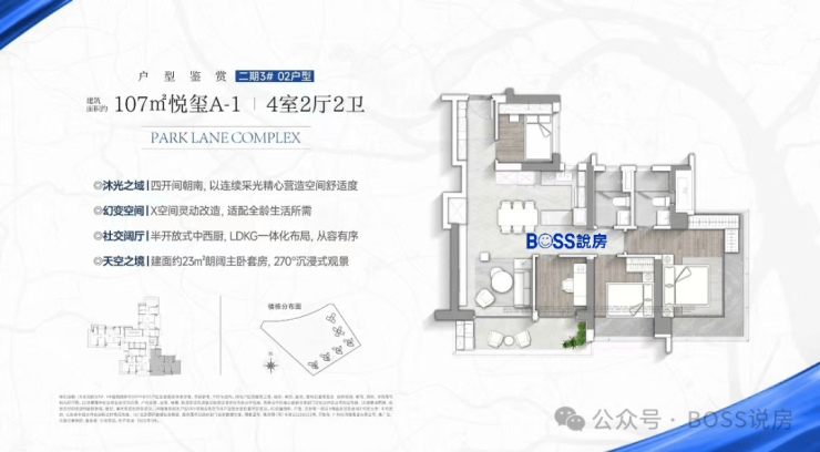 一是270度U型无遮挡柱的全画幅飘窗景观;