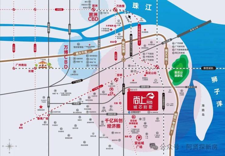 番禺尚上名筑位于番禺市石楼镇赤岗村地段,广州新城板块的核心位置。