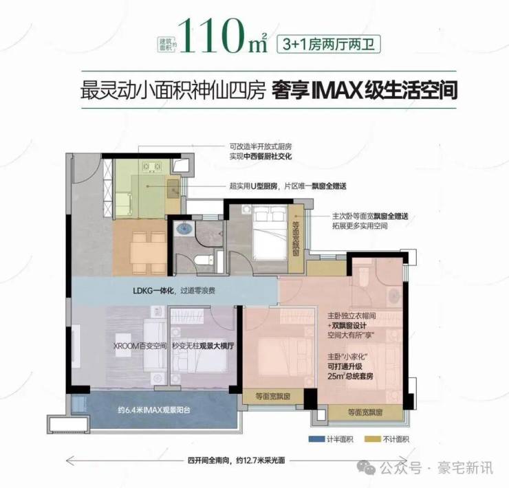 110平全能四房与124m王牌四房,超越标准的进阶之作,空间功能 步到位。多开间朝南,LDK客餐厨一体化,高拓展、超高实用率,约6.4米奢尺阳台,目之所及皆是赏心悦日【110㎡全能四房,生活一步到位】