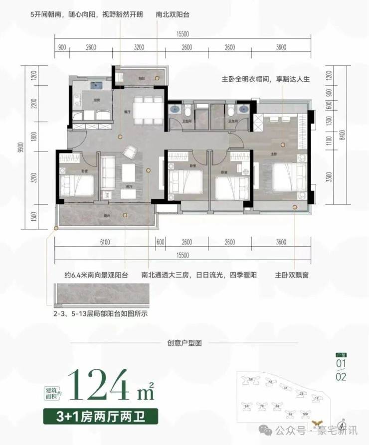 🩸【南北双阳台】约6.7米宽景阳台,约15.5米大面宽朝南,拥揽四季人生景致