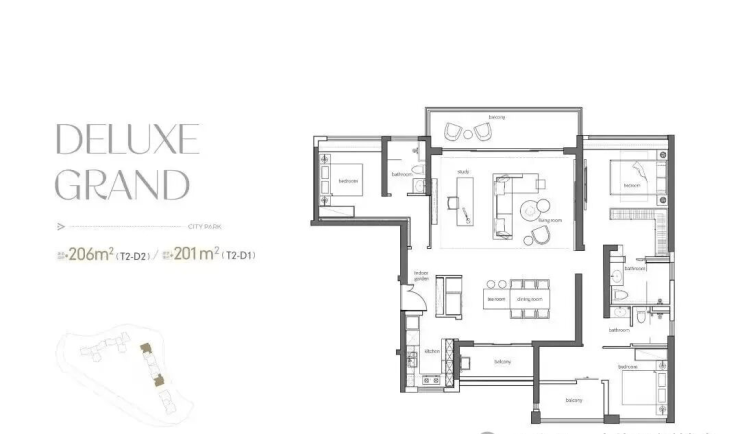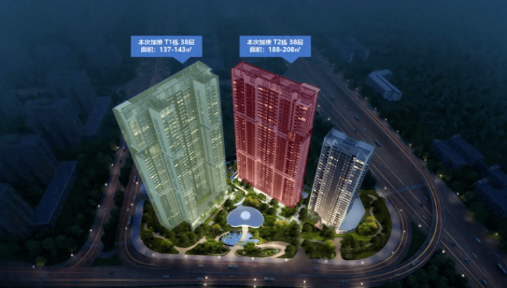项目总共3栋楼,分为T1、T2和T3栋,T2栋和T3栋是由2栋楼连起来的,也有说是5栋楼。