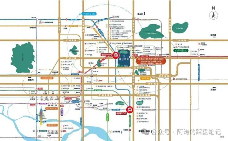 ②一大城轨:穗莞深-新白广城际,北至白云机场,南达深圳宝安机场,西连广州东站,通达佛山西站,速达大湾区各核心城市。