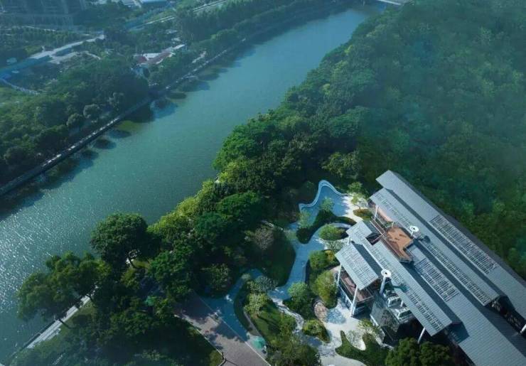 •岭南水街商脉:通过优化沿河景观,加入亲水平台、景观栈道、空中连廊和聚落式商业,规划约1.7km岭南特色滨水风情商业街。