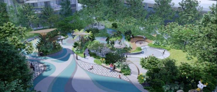 •对标日本六木木新城设计理念,规划约60万㎡的活力城市都心,包含五栋100m以上的商业地标办公楼,打造集办公、商业、文化等功能于一体的都会生态宜居大城。