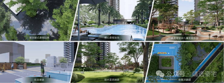 有氧环跑道、阳光大草坪、多重宅间花园等,