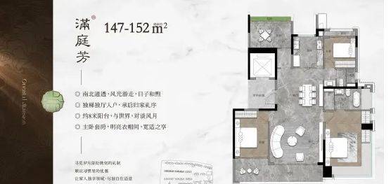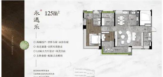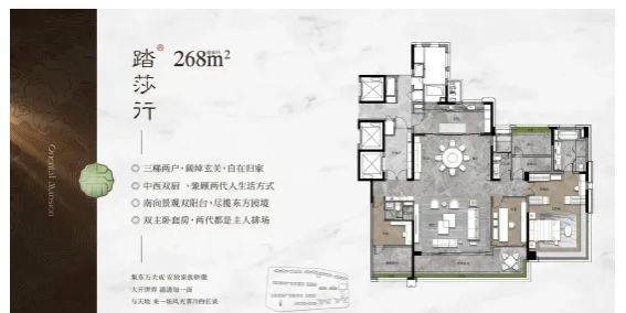 以 125 平户型为例,看似右上角空白处实际交付也是一个房间,空间布局合理,满足家庭不同功能需求。而 268 平的旗舰户型更是独具匠心。3T2 户设计,配备保姆电梯和保姆房,业主独梯入户,保障了居住的私密性与舒适性。户型整体采光面阔绰,坐拥宽敞的前后楼间距,室外景观与采光尽收室内。双主套设计,既满足大家庭成员的生活空间需求,又保证各自的私密空间,还可根据个人喜好改造成书房、电影院等。LDKG 近 120 平的大方厅,南北对流,空间利用率高,适合家庭聚会与孩子玩耍。主卧的步入式衣帽间、双开门设计,双衣帽间与双台盆配置,提升了生活的便利性与私密性,270° 全景飘窗尺度超 9 米,让主卧阳光充沛。